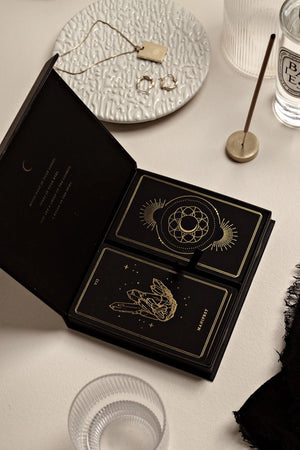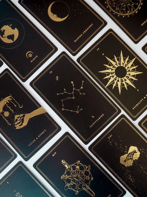 Child Of The Universe' is a coveted, dreamy 60-Card Oracle Deck and Book Set that bridges the Heavens and Earth. It pulls together celestial and astrological energies to bring you channeled guidance from Universal Source. It calls upon starry-eyed beginners and advanced practitioners alike. The massive 480 page guidebook is an entire 'book' in its own right, here to guide you in expanding your knowledge deep into both the technical and magical realms of Astrology.
