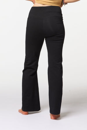 Our flared yoga pants offer more than just a perfect fit for your practice—they are a versatile addition to your sustainable wardrobe. Crafted from natural cotton, these breathable and comfortable yoga pants allow you to move through your day with ease and grace. The high-waisted design ensures you feel secure and confident, whether you’re flowing through yoga poses, travelling or embracing a chic street style with a blazer or your favourite jumper.
