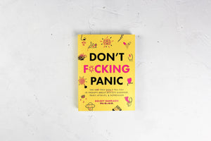 Don't F*cking Panic Book by Kelsey Darragh. If you are one of the millions of people struggling to manage your mental health, stop whatever you are doing and read this interactive workbook created by comedian and mental health advocate, Kelsey Darragh.