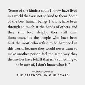 The Strength in Our Scars by Bianca Sparacino is a moving collection of poetry, prose, and gentle reminders for anyone learning to heal and begin again. With warmth and honesty, Sparacino explores the beauty in imperfection, the courage it takes to move on, and the quiet power of choosing yourself.