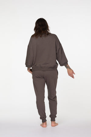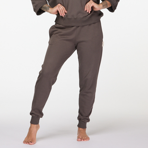 Warm, earthy and effortlessly soft. Our brown tapered pants are made from breathable GOTS-certified organic cotton — perfect for slow days and mindful movement. The gentle tapered cut offers a flattering, relaxed fit that moves easily through yoga, lounging or travel.