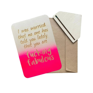 Our #1 aim is to help you connect with your favourite people through giving cards but we want the cards to stay out of the bin (or tucked away in the bottom draw!). So, to ensure that we don't add to landfill, we've created a wooden card that is a little piece of art that no-one will ever want to take off their shelf - it will just become part of the home decor.