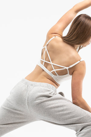Update your workout staples with our cotton sports bra. Our yoga bra offers a high neckline for extra coverage and an eye catching back detail. Constructed from organic cotton, this fitness bra offers medium support, ideal Yoga, Pilates and Boxing.  Pair our organic cotton yoga bra with our organic cotton leggings. Available in Black and White.