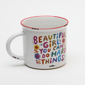 Crafted in a camp-style shape with charming distressed edges, this mug radiates warmth and authenticity — a little reminder that even the toughest days can be met with courage and grace.