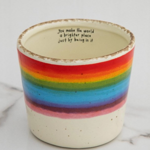This rainbow mug is a beautiful reminder to slow down and appreciate life’s little moments. Designed without a handle so you can wrap your hands around it, this piece brings warmth, mindfulness, and a gentle smile to your daily rituals.