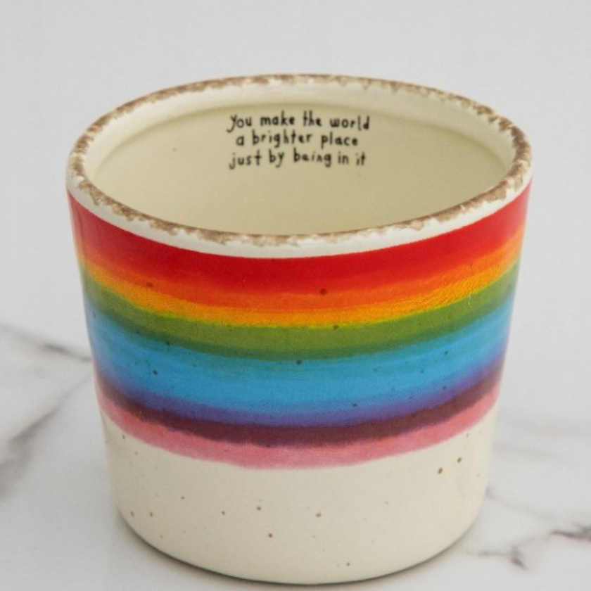 • Multicoloured rainbow design with inner message: “You make the world a brighter place just by being in it”