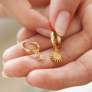 Sun + Star Charm Hoop Earrings