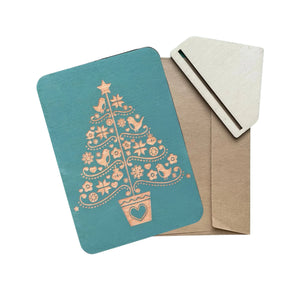 A Nordic inspired Christmas Tree. This handcrafted wooden greeting card brings warmth and Scandinavian charm to the festive season. Designed to be displayed, not tucked away, it becomes a beautiful keepsake that can be cherished year after year.