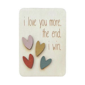 Make someone's day extra special with our I Love You More. The End. I win Card, made from Ply Wood. Each card is a masterpiece of creativity and sentiment, designed to convey your warmest wishes on their special day.