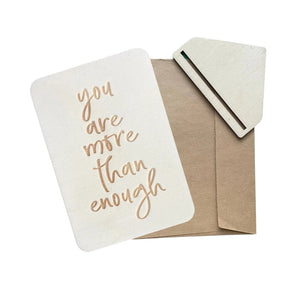 You are more than enough. Make someone's day extra special with our mindful ply wood greeting card. Each card is a masterpiece of creativity and sentiment, designed to convey your warmest wishes on their special day.