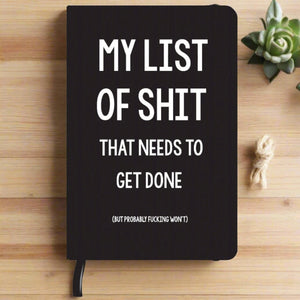The My List of Shit That Needs to Get Done Notebook is made for the beautifully chaotic souls who thrive on organised chaos. Whether you’re jotting down your next big idea, daily to-dos, or just pretending to be productive, this A5 notebook has your back.