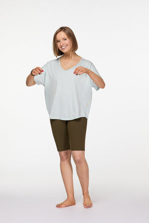 Our sustainably made slouchy tee features a flattering boxy fit and is perfect for layering. Pair it with our cotton leggings to complete the look.