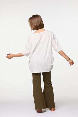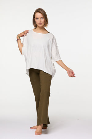 Update your workout staples with our super comfy boxy-shaped shirt. This organic cotton shirt is loose-fitted and features dropped armholes with intricate pleat details on the sides. This versatile women's T-Shirt is versatile and looks also great with your fav jeans.
