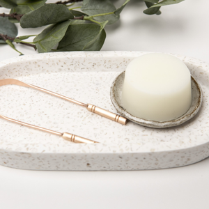 Keep your tongue healthy and germ-free with our copper tongue scraper. Our Ayurveda Copper Tongue Cleaner has an elegant, ergonomic design that makes it easy to use. The thick curved scraping edge gives precise control to cleanly scrape off the toxic white residue on your tongue without gagging. The long handles allow even control of the pressure applied to all sections of your tongue.
