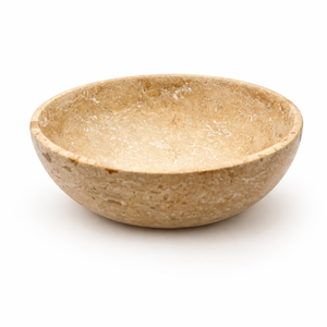 Deep travertine smudge bowl in natural stone with a smooth rounded shape on a white background