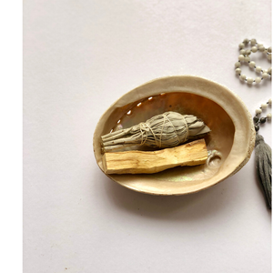 Our Abalone Smudge Bowls are perfect for rituals, catching cinders from smudging sticks while symbolically enhancing your practice. Each shell embodies the four elements: water (the shell), air (the smoke), earth (the herbs or sticks), and fire (the lit smudge).