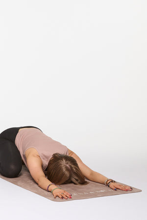 Love the colour and quality of the mat. The suede feels soft and has a great grip and doesn’t slide. It folds up easily and fits in my bag. Overall it’s great mat and I’m very happy with it!