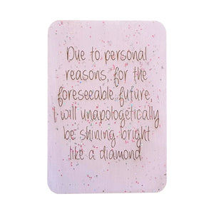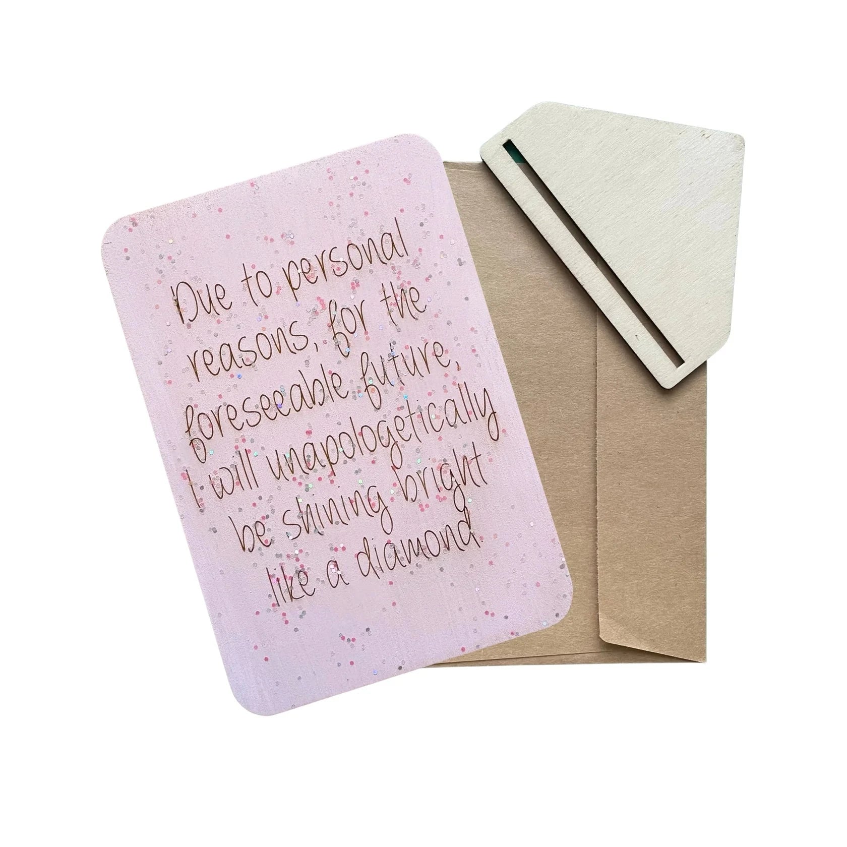 Due To Personal Reasons, for The Foreseeable Future I Will Shine bright like a diamond. Make someone's day extra special with our Ply Wood Card. Each card is a masterpiece of creativity and sentiment, designed to convey your warmest wishes on their special day.