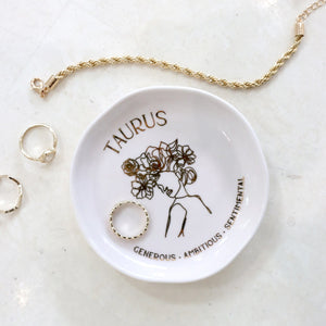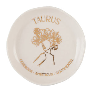 Embrace the adventurous spirit ofTaurus with our stunning Zodiac Trinket Tray.  Designed to infuse celestial charm into your home. Our Zodiac trinket dish features intricately designed zodiac symbols, elemental representations and planetary motifs. Made from premium ceramic, it is the perfect addition to any astrology enthusiast's collection.