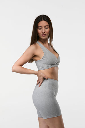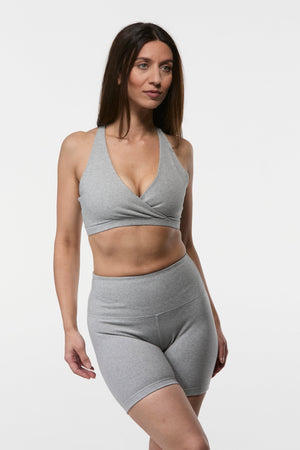 Our soft cotton yoga bra is designed to offer medium to high support with a soft, breathable feel against the skin. Featuring a flattering wrap front and a racerback back detail, this bra moves effortlessly with you from studio sessions to everyday wear.